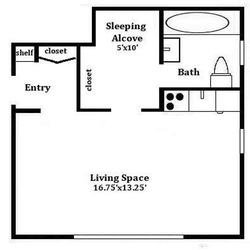 Studio Apartments You will really enjoy this spacious studio apartment with its large living space and off set sleeping alcove. Complete